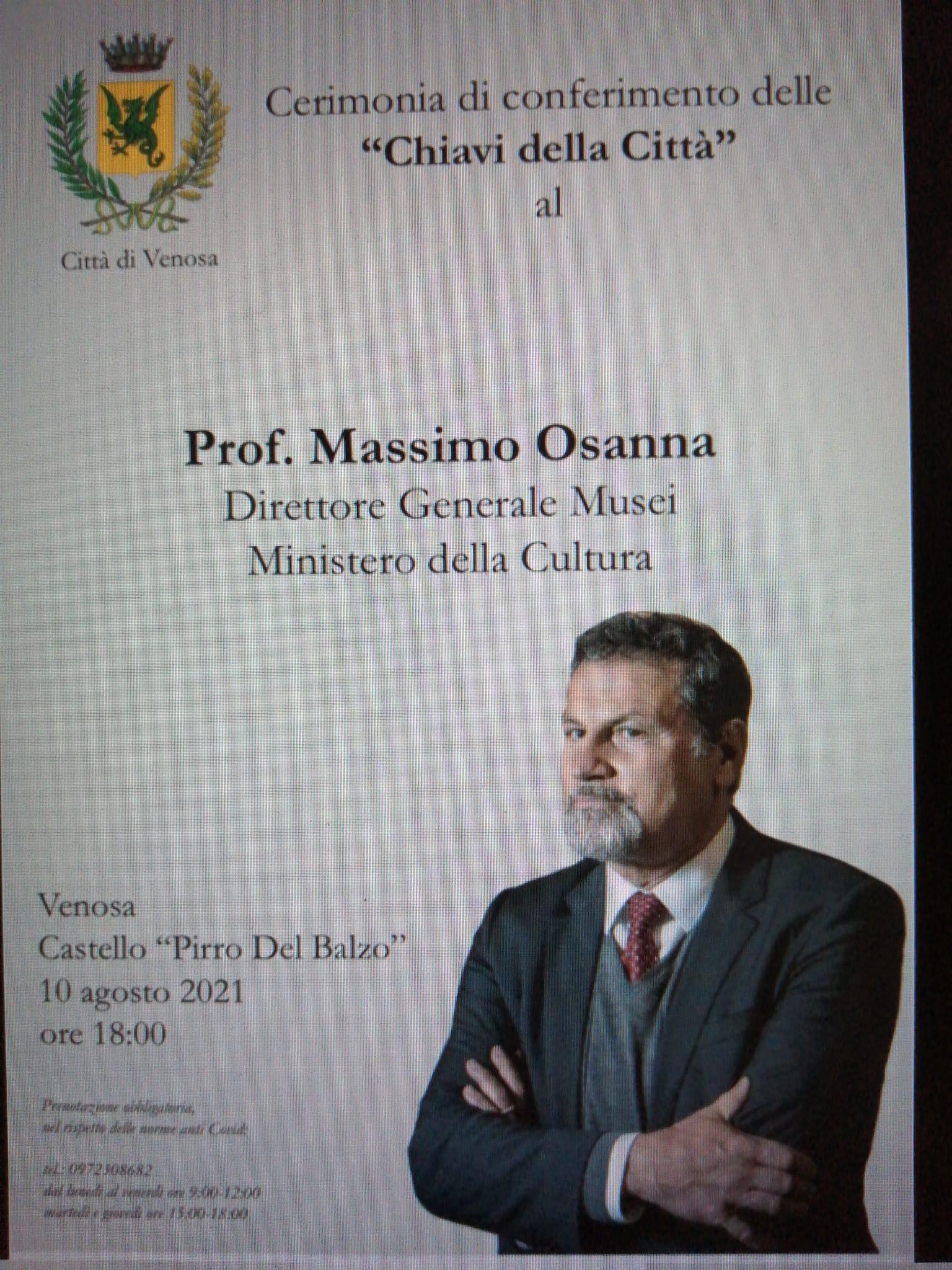 Il Direttore generale Musei Massimo Osanna riceve le chiavi della Città di Venosa