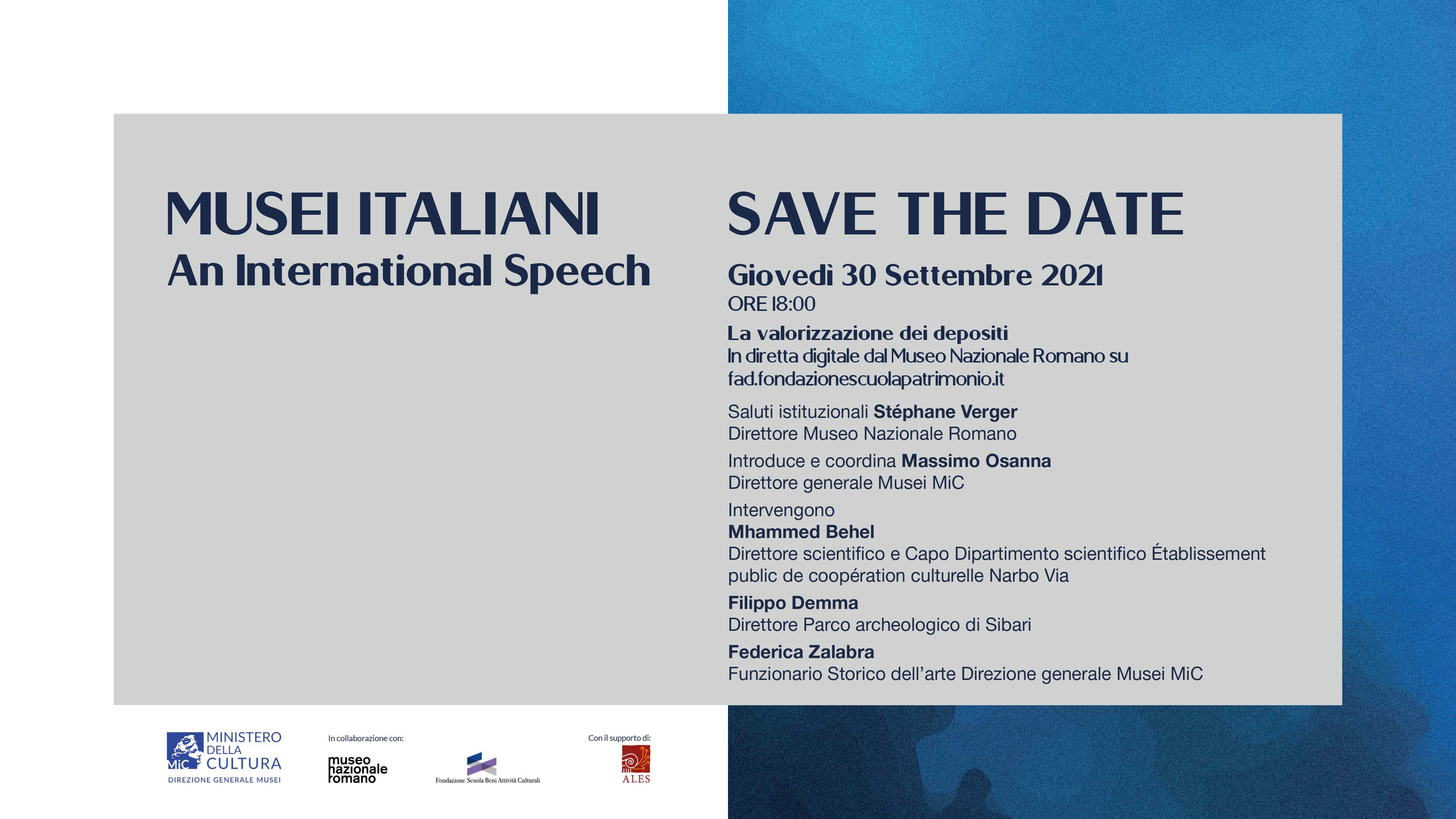 Si terrà giovedì 30 settembre 2021, alle ore 18, il prossimo appuntamento di Musei Italiani. An International Speech, il ciclo di incontri della Direzione generale Musei sul Sistema museale nazionale, dedicati al dialogo internazionale.