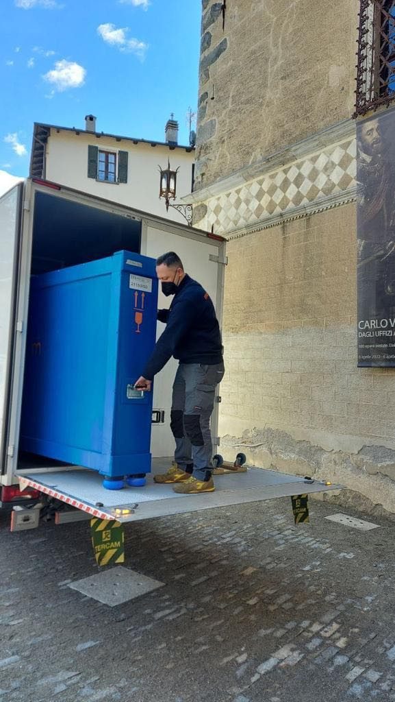 Hanno accolto l’arrivo dell’opera la Direttrice regionale Musei della Lombardia, Emanuela Daffra, la Direttrice di Palazzo Besta, Giuseppina di Gangi, e il Sindaco di Teglio, Elio Moretti.