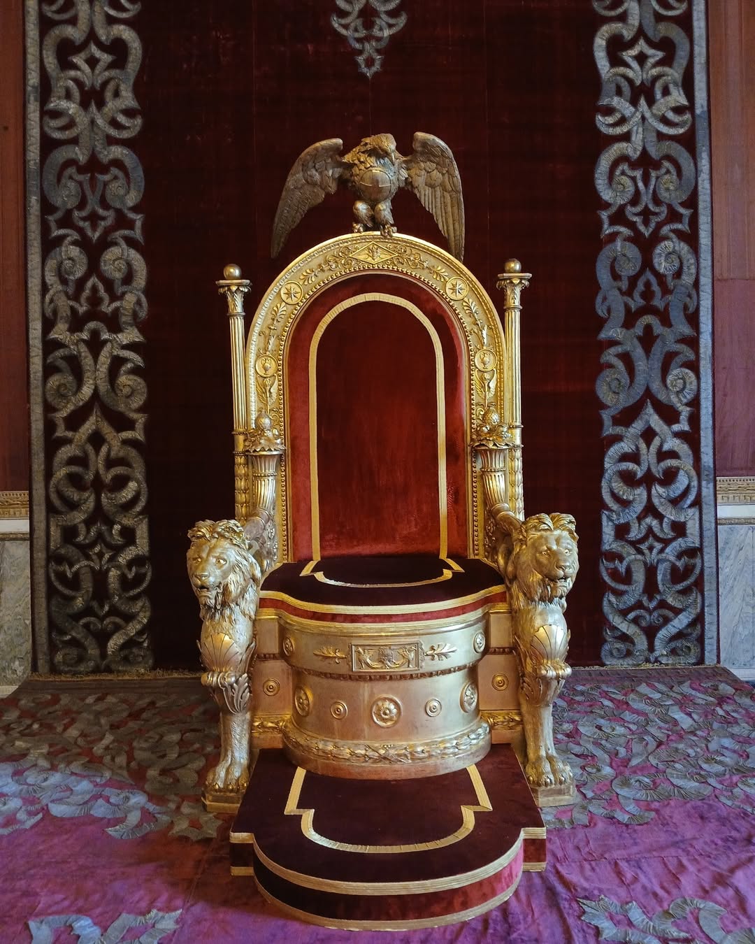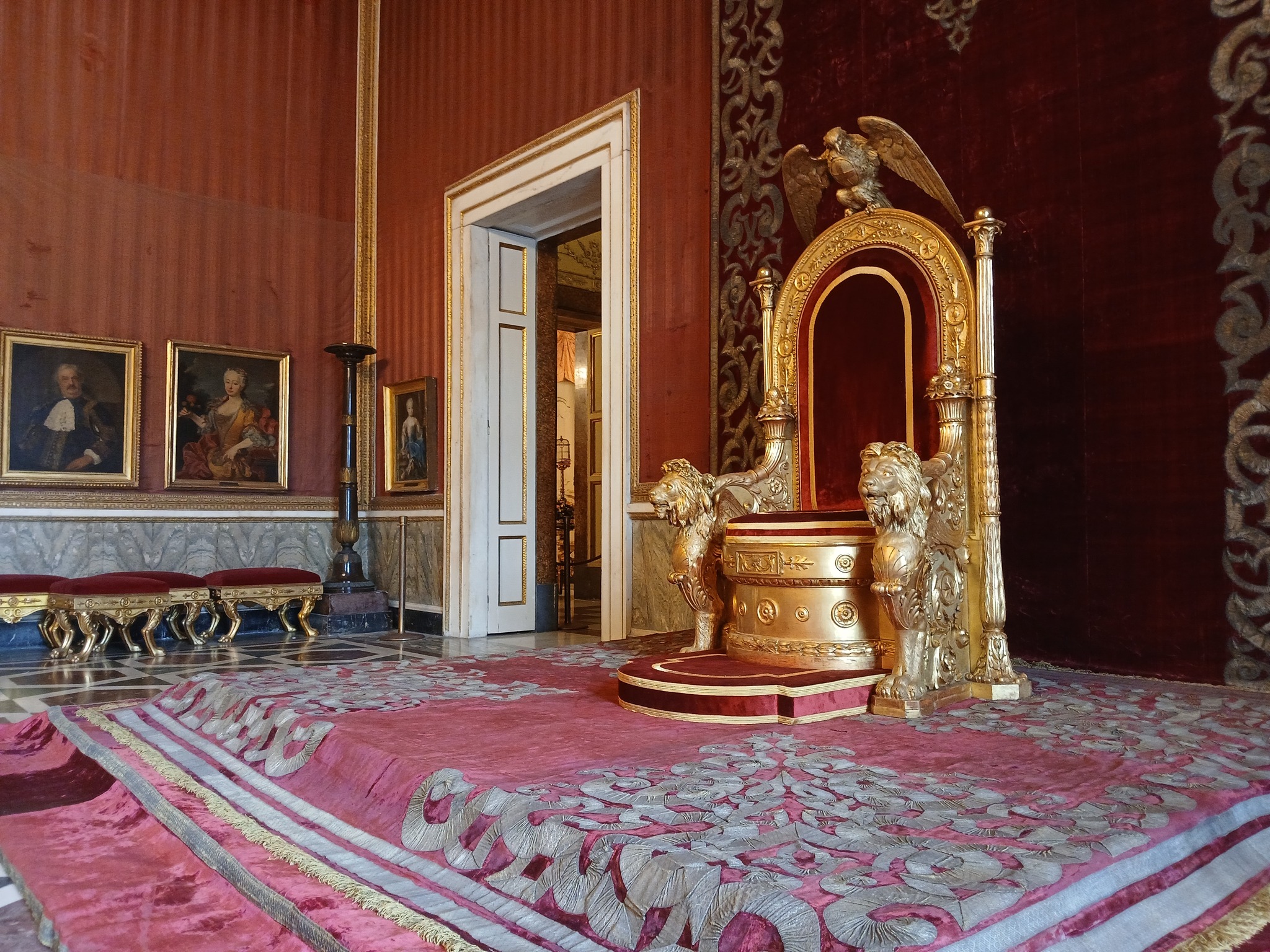 Per l’occasione sono stati condotti importanti interventi anche al tappeto sul quale poggia la seduta regale, alle fasce laterali che ricoprono la pedana e alle mantovane delle tende, oltre a un accurato “spolvero” del baldacchino. I lavori ai tessili sono stati effettuati negli ultimi tre mesi direttamente nella sala del Trono, in modo che potessero essere osservate dal vivo le fasi del restauro, complesso e delicato.