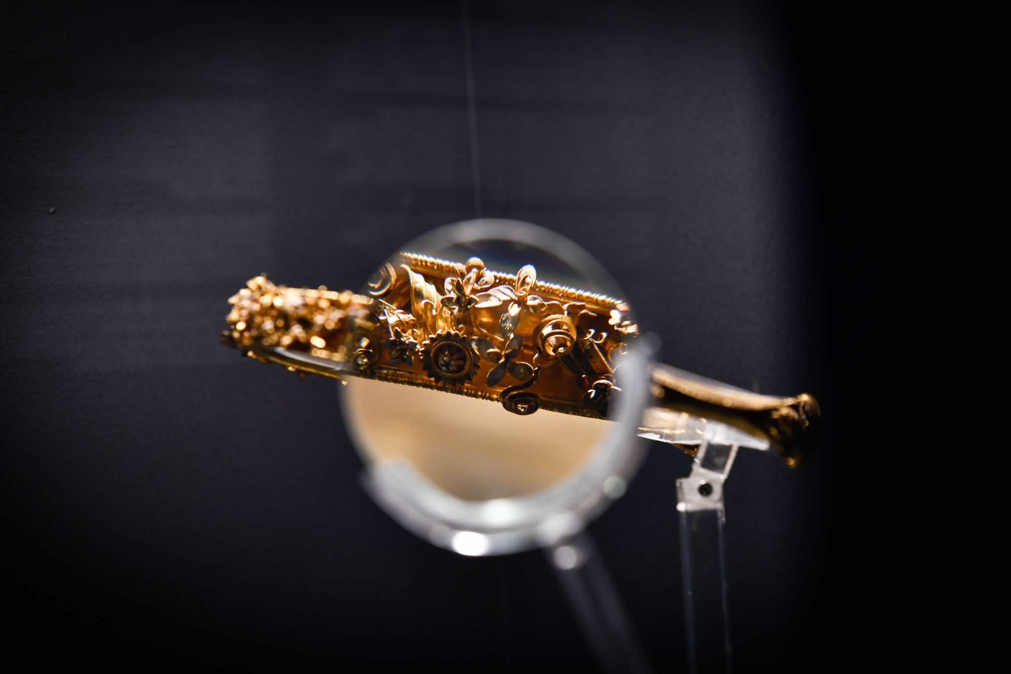 Tra tutti spiccano i vasi policromi e plastici – dal peculiare colore rosa intenso – arricchiti da figurine applicate, che rappresentano una produzione originale delle botteghe canosine dell’epoca, ma anche due oggetti straordinari come il diadema in oro e pietre preziose, decorato da fiori, bacche e foglie mobili, e uno scettro in lamina aurea, custoditi nel Museo Archeologico Nazionale di Taranto, appartenuti in origine a una donna canosina, sicuramente di rango regale.